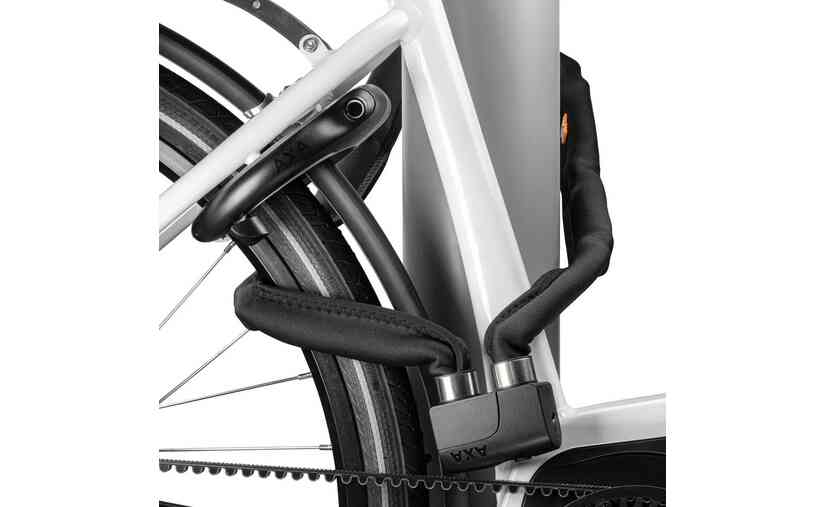 Fabriqué en acier trempé, cet antivol est doté de plusieurs points de pivot, ce qui le rend facile à utiliser et assure une fixation sécurisée sur des objets fixes. Le cylindre à clé est protégé de l’humidité et de la poussière par un couvercle, prolongeant ainsi sa durée de vie. La housse de protection en néoprène noir prévient les rayures sur le cadre de votre vélo. Le support de transport anti-vibrations se fixe sur le cadre, et le système de fixation AXA Fix inclus permet une installation flexible, même sans vis de cadre.