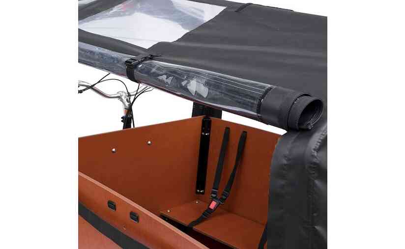 La housse de pluie pour la Babboe Max-E s’installe rapidement et facilement. Fixée au coffre, elle reste bien tendue et empêche l’eau de stagner sur le toit. Cette housse pour la poussette électrique Babboe Max est également équipée de fenêtres sur tous les côtés. Vos enfants bénéficient ainsi d’une vue dégagée sur leur environnement, et vous pouvez les surveiller facilement. Toutes les fenêtres peuvent être ouvertes, enroulées et fermées par des fermetures éclair. Si vous souhaitez les ouvrir brièvement, vous pouvez simplement les poser sur le toit et les fixer avec du Velcro.