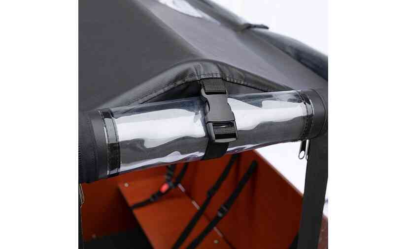 La housse de pluie pour la poussette Babboe Max-E protège vos enfants de la pluie et des vents forts. Elle est fournie avec une armature.