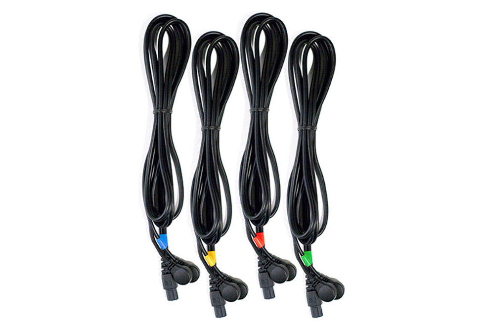 •     1 jeu de câbles de stimulation noirs à connexion Snap, avec indicateurs de couleurs (bleu, vert, jaune, rouge)