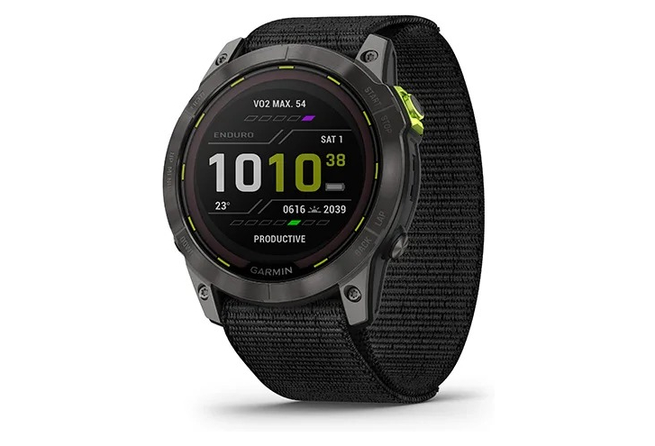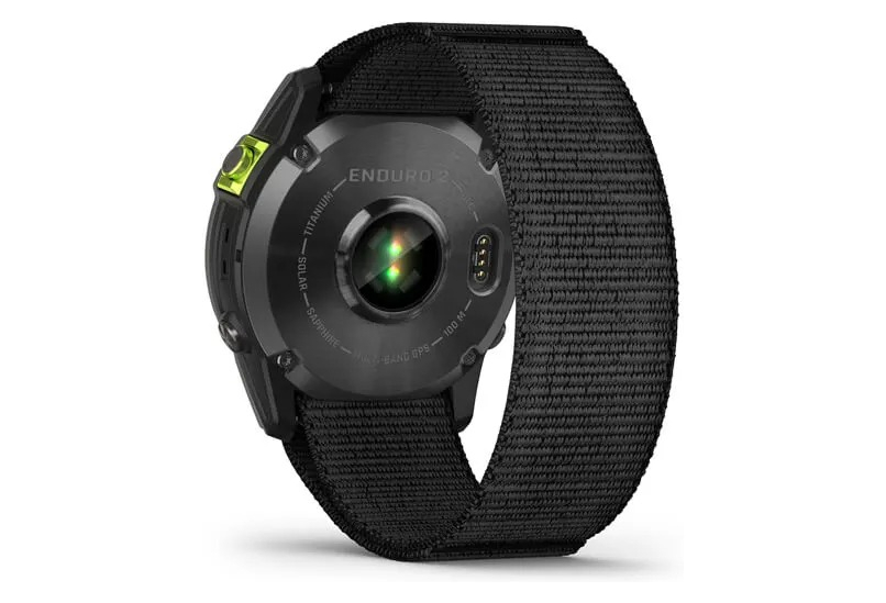 La conception robuste, sophistiquée et légère de la Garmin Enduro 2 intègre un grand écran solaire de 1,4″ et un boîtier de 51 mm avec verre en cristal de saphir. Le bracelet Ultrafit reste confortable sur de longues distances, même dans les conditions les plus difficiles. Les boutons traditionnels qui fonctionnent dans n’importe quel environnement sont accompagnés d’une nouvelle interface tactile réactive pour un accès rapide aux options et fonctions.