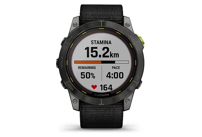 • Application pour le Raids Aventure : Ce profil d’activité vous permet de voir la fréquence cardiaque, l’altitude, la durée des segments et d’autres métriques pendant la course. Il enregistre le GPS dans ce mode, mais ne l’affiche pas, conformément aux règles internationales des raids aventure. Un écran de résumé vous permet même de vérifier votre temps final auprès du comité de course.