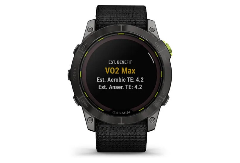 • Métriques de performance : Affichez des données d’entraînement avancées incluant les dynamiques de course (Running Dynamics), la VO2 Max. ajustée à la température et à l’altitude, des ajustements pour le trail running, l’aide à la récupération et bien plus encore.