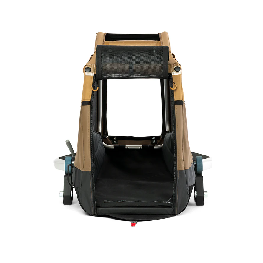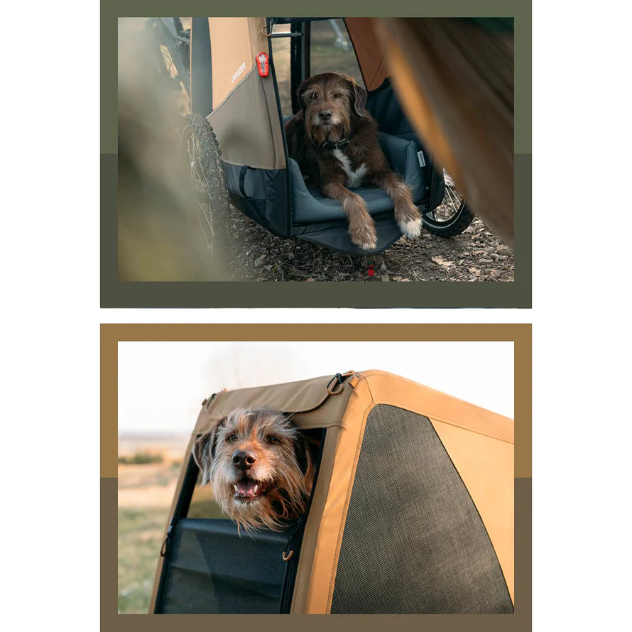 Le plancher rigide, les pneus tout terrain ainsi que les suspensions Croozer AirPad® garantissent le transport de l’animal dans de bonnes conditions. Un bac-tapis de sol est présent. Il est retirable et peut se nettoyer. Un panneau opaque à enroulement à l’arrière et un vitrage amovible à l’avant servent, quant à eux, à protéger de la pluie, des projections ou des rayons du soleil. Pour assurer le confort du chien à l’intérieur de la remorque, un toit avec bâche ouvrable sur l’avant et le dessus permet à l’animal curieux de profiter de l’air et de la balade et éviter la sensation d’enfermement. Cette ouverture est particulièrement pratique lors de la phase d’habituation. La ventilation est assurée par des ouvertures à filet à l’avant, sur les côtés et à l’arrière.