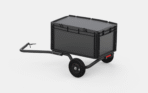 À pied, la remorque devient un diable grâce à ses roues reculées, permettant de passer du vélo à la marche sans aucune modification.