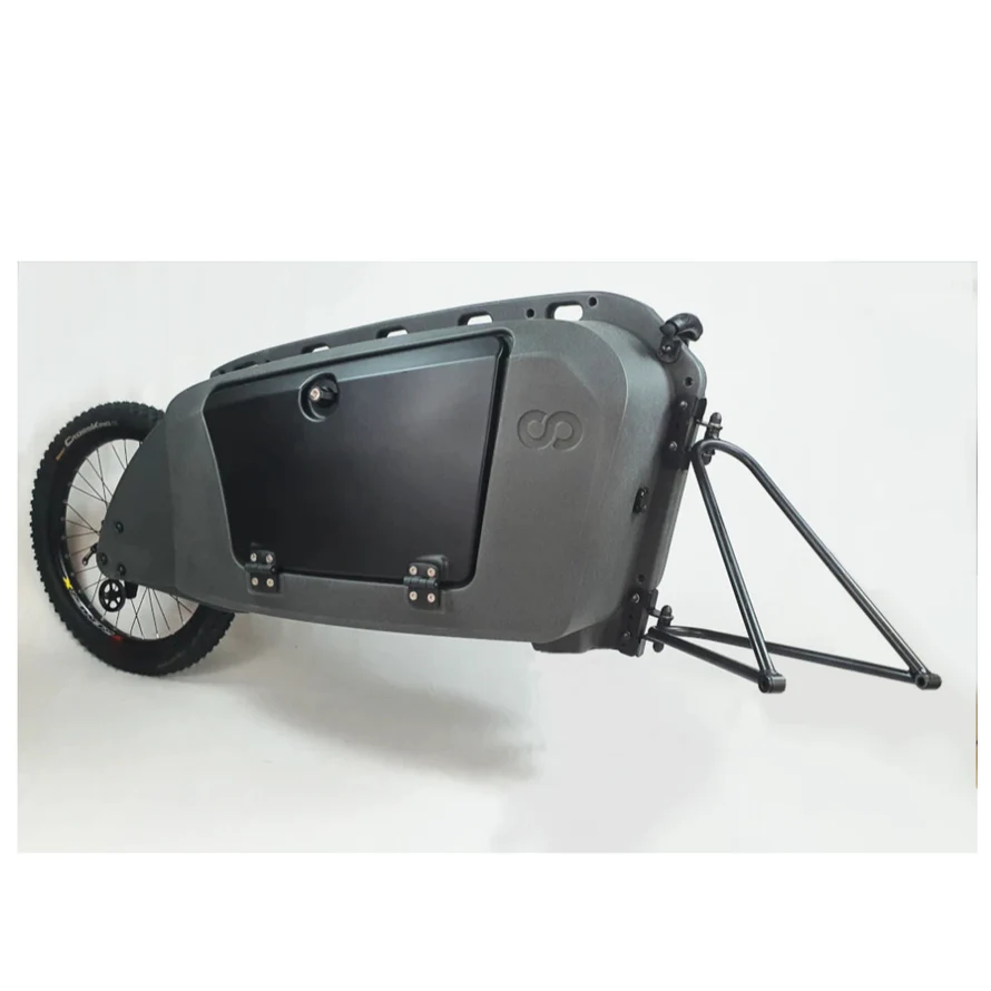 La Kern contient un volume intérieur de 120 litres. Son coffre étanche est parfait pour transporter vos courses du quotidien (et notamment des articles lourds comme des packs d’eau). Il peut aussi servir à accueillir votre matériel de camping si vous prévoyez une expédition plus longue ou une sortie en famille. Conçue pour répondre à une grande variété de besoins, la Kern de SolarMoov est très confortable à utiliser. Sa « colonne vertébrale » longitudinale la rend autoportante et facilite ainsi vos manœuvres avec votre vélo. Cette caractéristique innovante permet également de limiter le poids de la remorque à 6kg, sans les équipements.