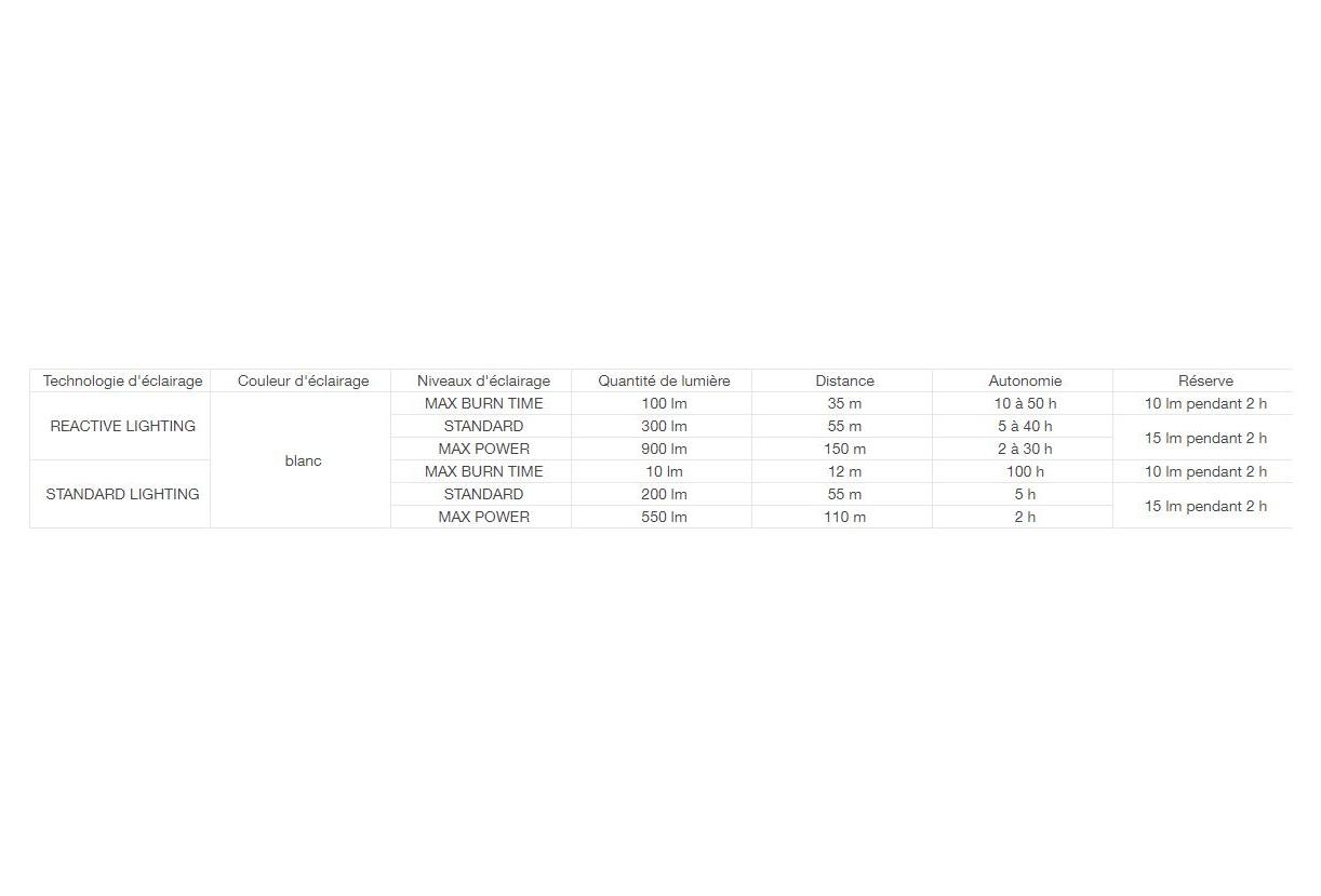 • plus d’autonomie, de confort visuel et des manipulations réduites avec le mode REACTIVE LIGHTING : la puissance d’éclairage et la forme du faisceau s’adaptent automatiquement, grâce à un capteur de luminosité permettant d’optimiser l’utilisation de la batterie,